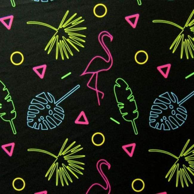 This is a Light-Weight Neon Signs Print on Polyester Spandex Fabric, With a 4 Way Stretch, Black/Neon Colored