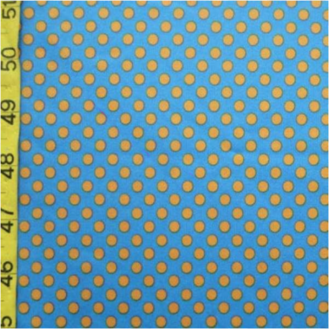 This is a Medium-Weight Polka Dots Print on Nylon Spandex Fabric, With a 4 Way Stretch, Orange/Corona Colored