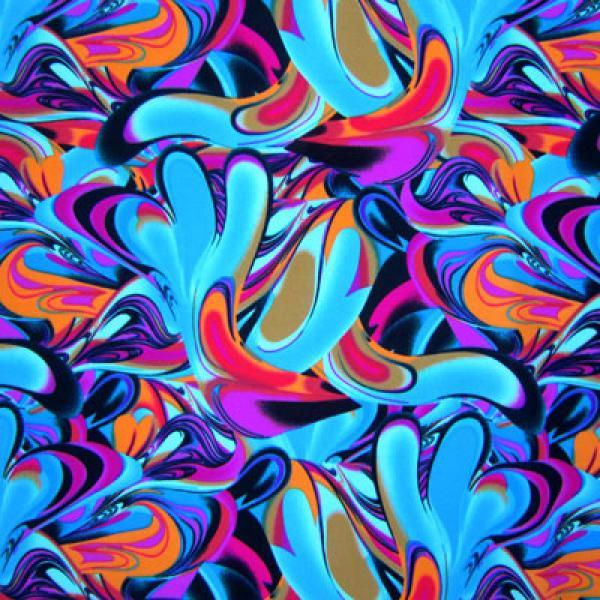 This is a Medium-Weight Psychedelic Swirl Print on Nylon Spandex Fabric, With a 4 Way Stretch, Multi-Colored Colored