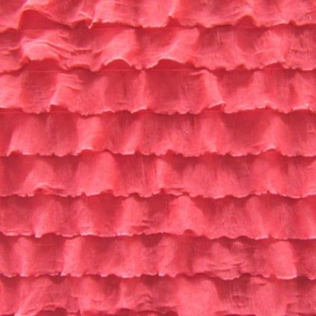 This is a Medium-Weight Ruffle Print on Polyester Spandex Fabric, With a 2 Way Stretch, Coral Colored