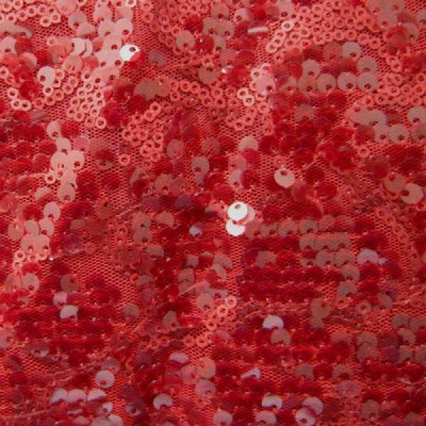 This is a Medium-Weight Sequins on Mesh Fabric, With a 2 Way Stretch, Red Colored
