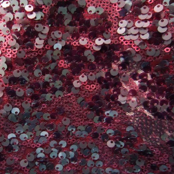 This is a Medium-Weight Sequins on Mesh Fabric, With a 2 Way Stretch, Wine/Red Colored