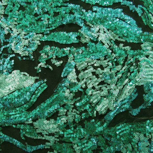 This is a Medium-Weight Sequins on Mesh Fabric, With a Non-Stretch, Turquoise/Black Colored