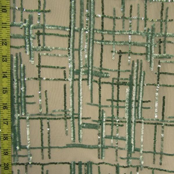 This is a Medium-Weight Sequins on Mesh on Stretch Mesh Fabric, With a 2 Way Stretch, Light Pink/Green Colored