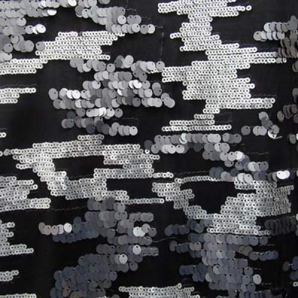 This is a Medium-Weight Sequins on Polyester Spandex Fabric, With a 2 Way Stretch, Steel/Black Colored