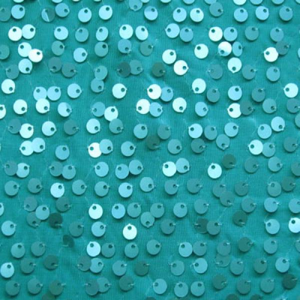 This is a Medium-Weight Sequins on Polyester Spandex Fabric, With a 2 Way Stretch, Turquoise Colored