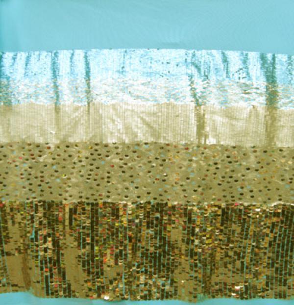 This is a Medium-Weight Sequins on Stretch Mesh Fabric, With a 2 Way Stretch, Blue Colored