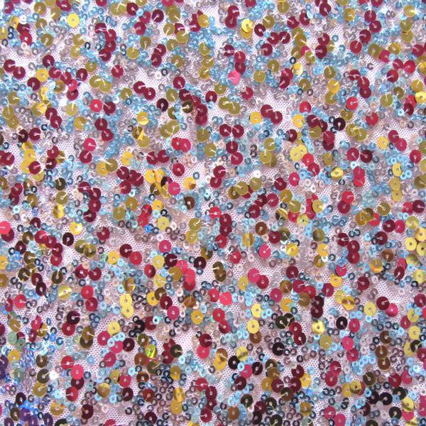 Sequins On Stretch Mesh, 2 Way Stretch, Pink/Red