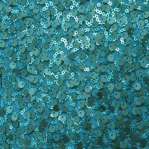 This is a Medium-Weight Sequins on Stretch Mesh Fabric, With a 2 Way Stretch, Teal Colored