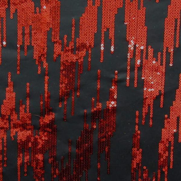 This is a Medium-Weight Shiny 2mm Sequins on Polyester Spandex Fabric, With a 2 Way Stretch, Red/Black Colored