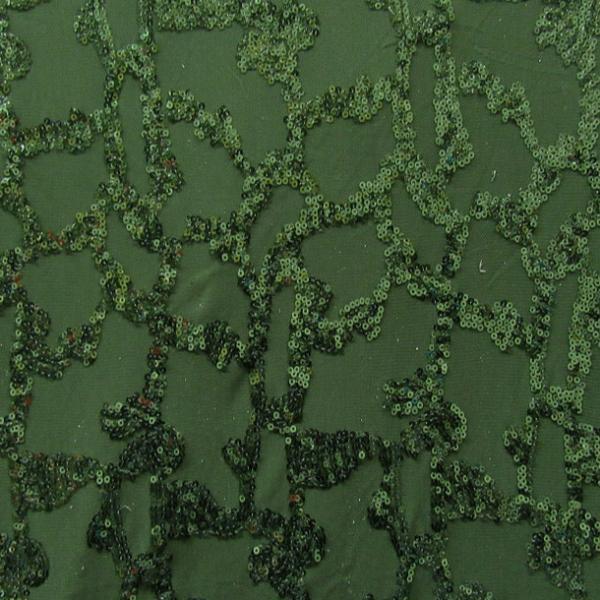 Shiny Fancy 2Mm Sequins On Stretch Mesh, 2 Way Stretch, Olive
