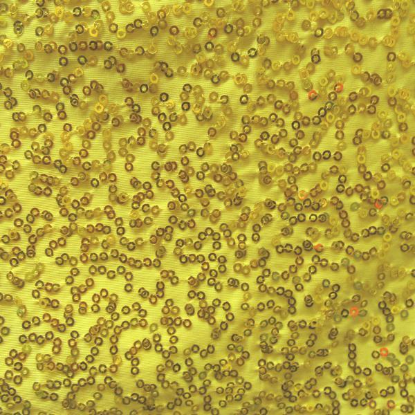 This is a Medium-Weight Shiny Fancy Squiggle 2mm Sequins on Polyester Spandex Fabric, With a 2 Way Stretch, Gold Colored