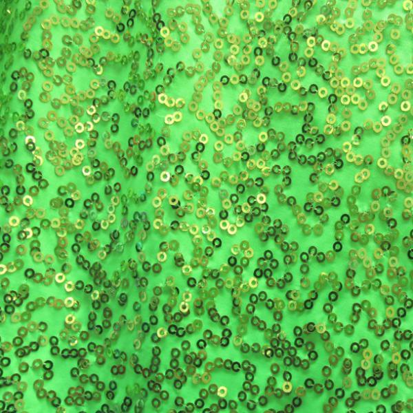 This is a Medium-Weight Shiny Fancy Squiggle 2mm Sequins on Polyester Spandex Fabric, With a 2 Way Stretch, Gold/Neon Green Colored