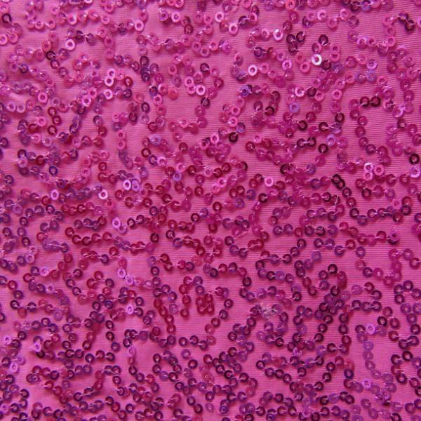 This is a Medium-Weight Shiny Fancy Squiggle 2mm Sequins on Spandex Fabric, With a 2 Way Stretch, Fuchsia Colored
