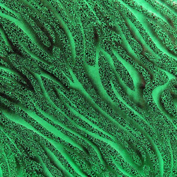 This is a Medium-Weight Shiny Metallic Holographic Snake Print Foil on Nylon Spandex Fabric, With a 4 Way Stretch, Kelly/Black Colored