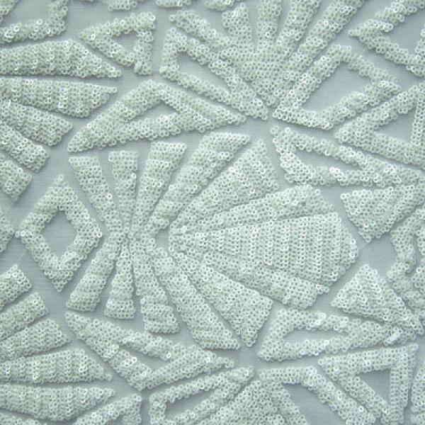 This is a Medium-Weight Shiny Sequins on Mesh Fabric, With a 2 Way Stretch, White Colored