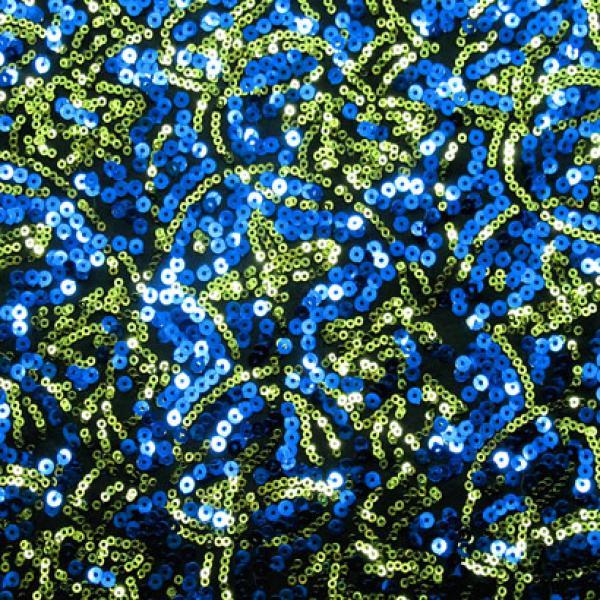 Shiny Sequins On Polyester Spandex, 2 Way Stretch, Corona/Moss Green/Black