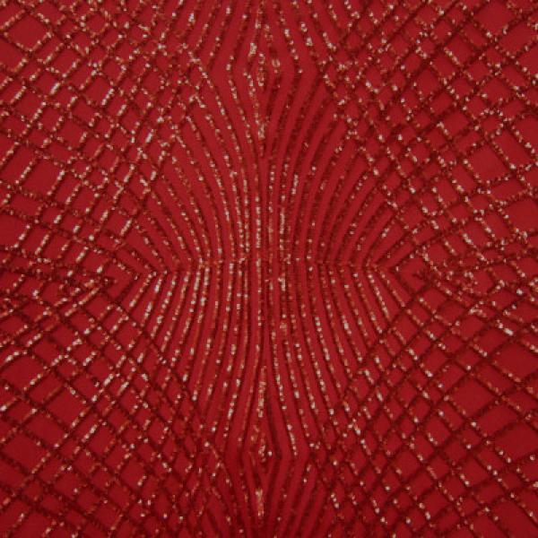 This is a Shiny Spider Web Sequins on Mesh, 2 Way Stretch, Red Made from Mesh