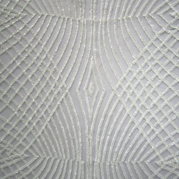 This is a Shiny Spider Web Sequins on Mesh, 2 Way Stretch, White Made from Mesh
