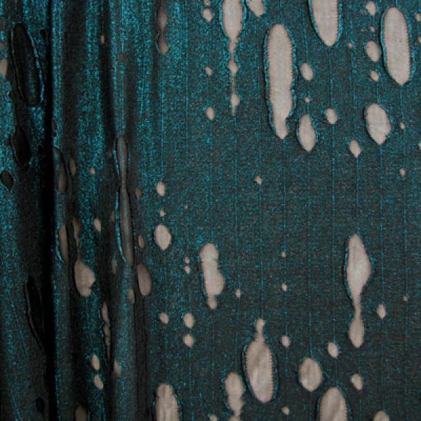 This is a Single Knit Distressed Look Jersey with Holes, Non-Stretch, Turquoise/Black