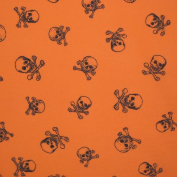 This is a Skull Print ITY, 2 Way Stretch, Neon Orange Made from Spandex