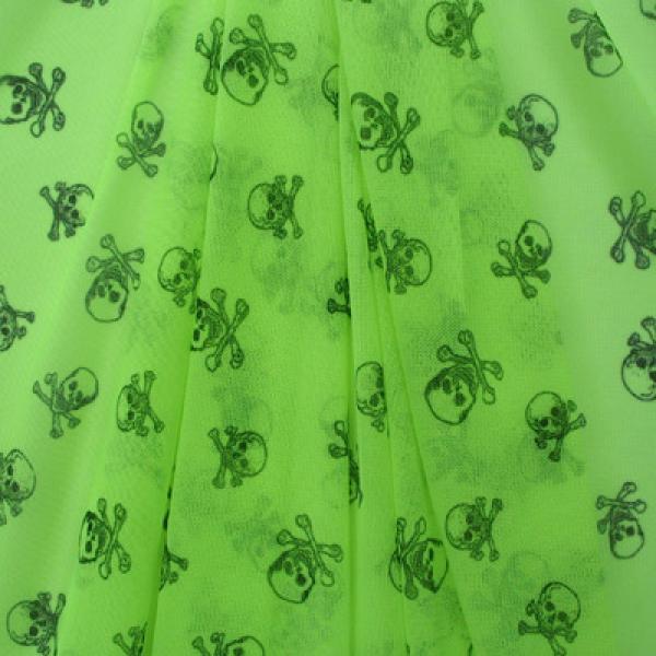 Skull Print Mesh On Nylon Mesh, 2 Way Stretch, Green