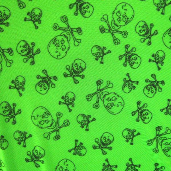 This is a Light-Weight Skull Print on Mesh Fabric, With a 4 Way Stretch, Neon Green Colored