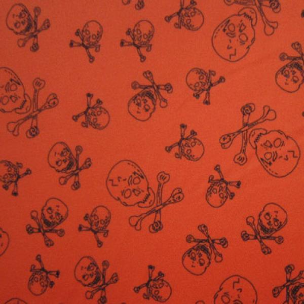 This is a Light-Weight Skull Print on Mesh Fabric, With a 4 Way Stretch, Orange Colored