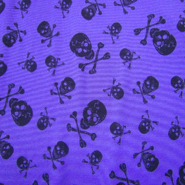 This is a Light-Weight Skull Print on Mesh Fabric, With a 4 Way Stretch, Purple Colored