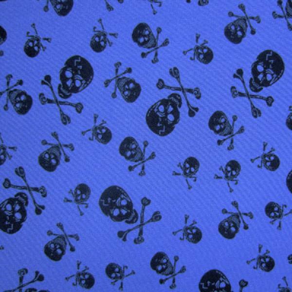 This is a Light-Weight Skull Print on Mesh Fabric, With a 4 Way Stretch, Royal Colored
