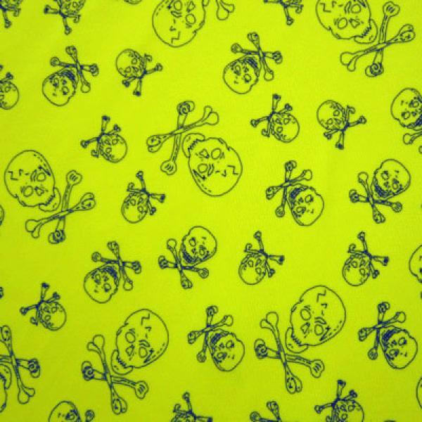 This is a Light-Weight Skull Print on Mesh Fabric, With a 4 Way Stretch, Samba Yellow Colored