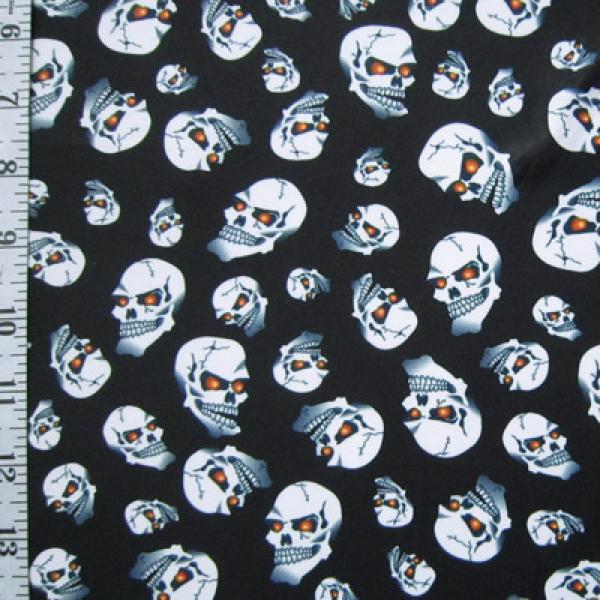 This is a Light-Weight Skulls Print on Polyester Spandex Fabric, With a 4 Way Stretch, Multi-Colored Colored