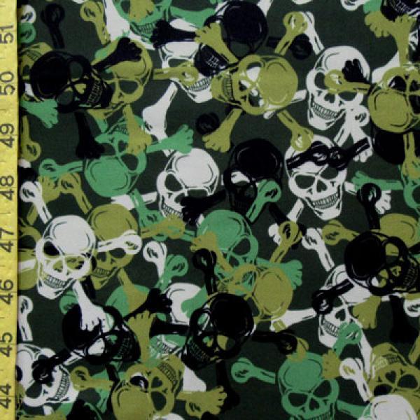 This is a Light-Weight Skulls Print on Polyester Spandex Fabric, With a 4 Way Stretch, Multi-Colored Colored