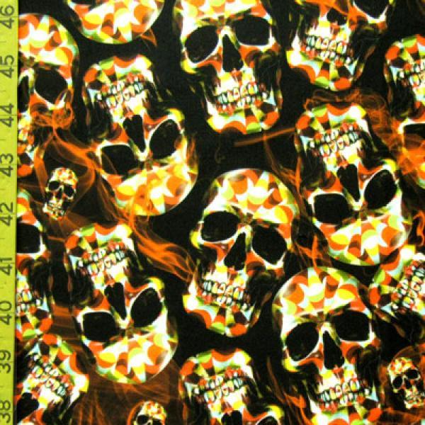 This is a Light-Weight Skulls Print on Polyester Spandex Fabric, With a 4 Way Stretch, Multi-Colored Colored