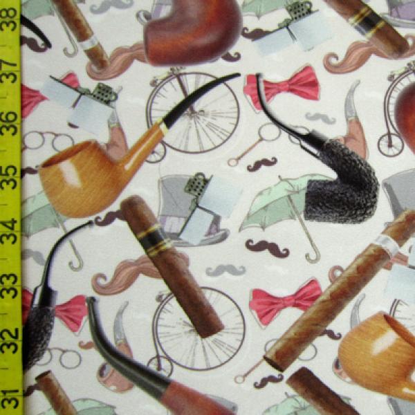 This is a Light-Weight Smoking Pipe Print on Polyester Spandex Fabric, With a 4 Way Stretch, Multi-Colored Colored