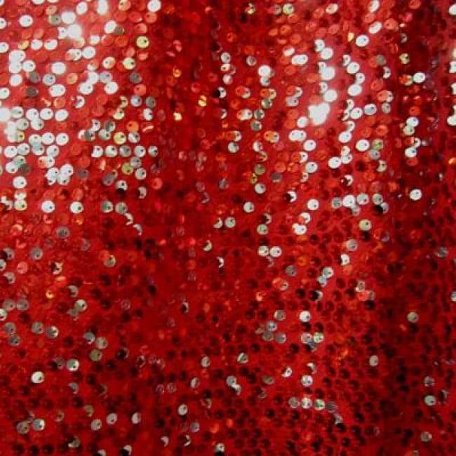 This is a Medium-Weight Solid Color Sequins on Polyester Spandex Fabric, With a 2 Way Stretch, Red/Silver Colored
