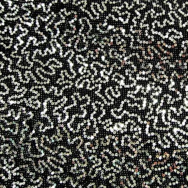 This is a Squiggle 2mm Sequins & Lurex on Slinky, 2 Way Stretch, Silver/Black Made from Polyester