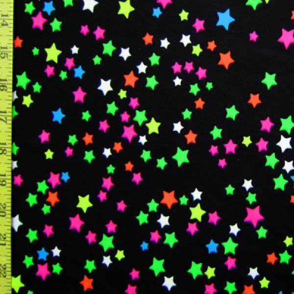 This is a Medium-Weight Stars Print on Nylon Spandex Fabric, With a 4 Way Stretch, Multi-Colored Colored