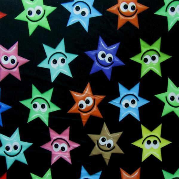 Smiling Stars Print On Polyester Spandex, 4 Way Stretch, Multi-Color