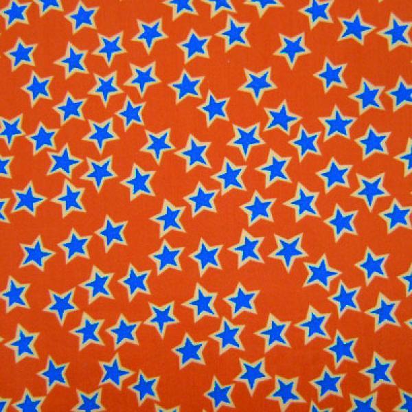 This is a Medium-Weight Stars Print on Polyester Spandex Fabric, With a 4 Way Stretch, Orange Colored