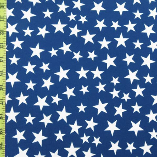 This is a Medium-Weight Stars Print on Polyester Spandex Fabric, With a 4 Way Stretch, White/Sapphire Colored
