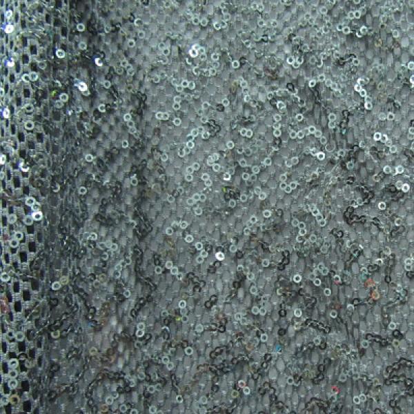This is a Steel 2mm Sequins on Fishnet, 2 Way Stretch, Steel Made from Net