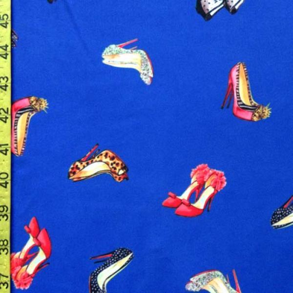 This is a Medium-Weight Stilettos Print on Nylon Spandex Fabric, With a 4 Way Stretch, Multi-Colored Colored