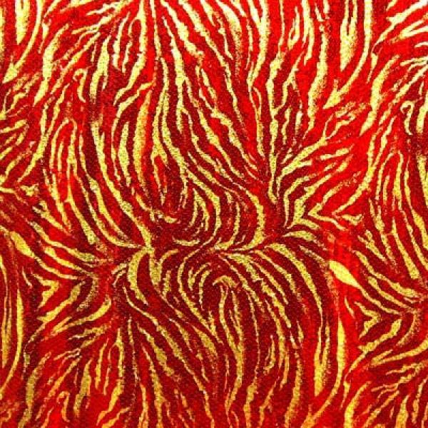 Tiger Print Metallic Foil Sequins On Polyester Spandex, 2 Way Stretch, Gold/Red