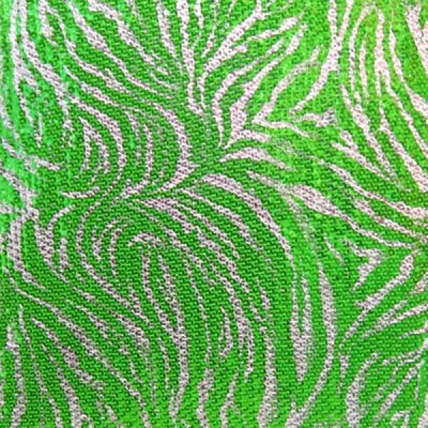 This is a Medium-Weight Tiger Print Metallic Foil Sequins on Polyester Spandex Fabric, With a 2 Way Stretch, Silver/Green Colored