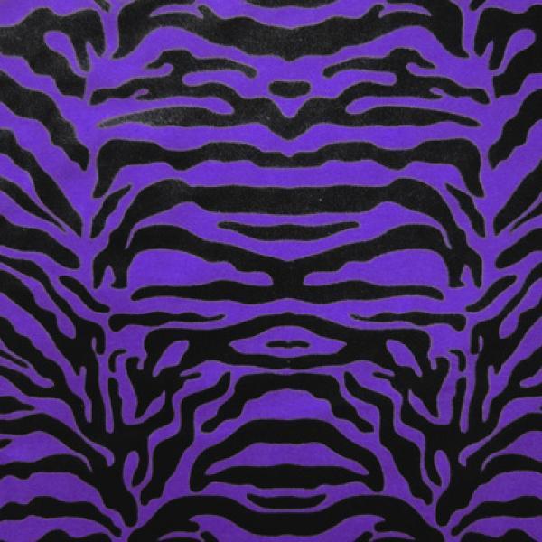 This is a Medium-Weight Tiger Print on Nylon Spandex Fabric, With a 4 Way Stretch, Black/Purple Colored