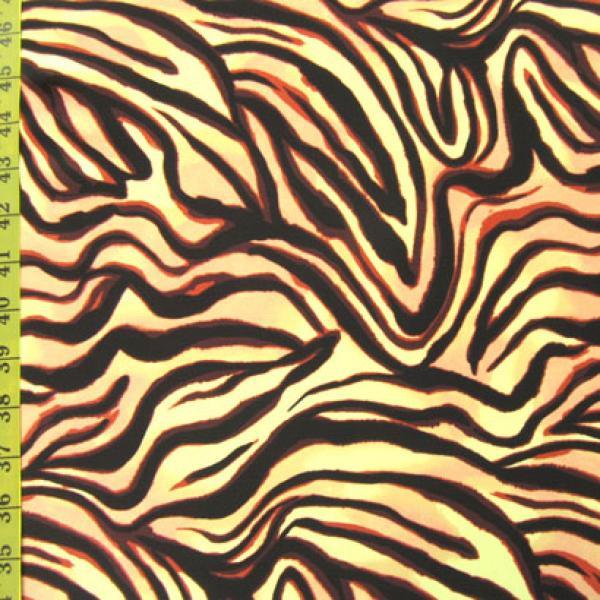 This is a Medium-Weight Tiger Print on Nylon Spandex Fabric, With a 4 Way Stretch, Cream/Black Colored