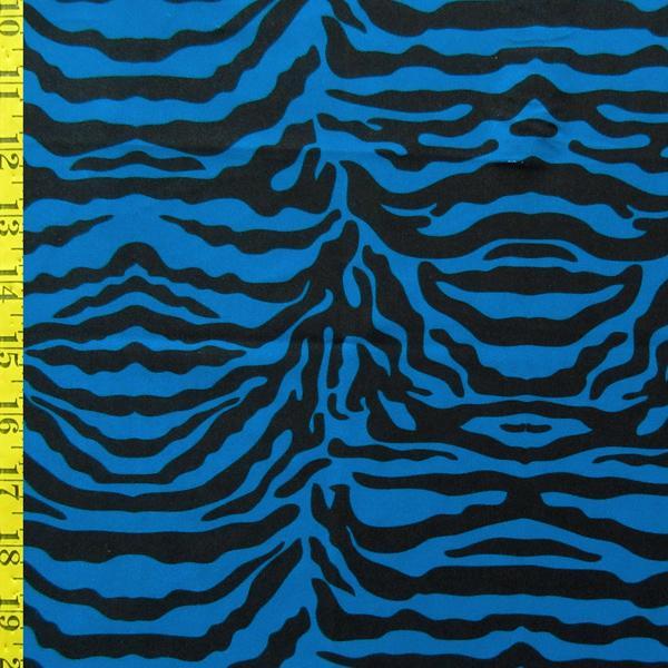 This is a Medium-Weight Tiger Print on Polyester Spandex Fabric, With a 2 Way Stretch, Black/Turquoise Colored
