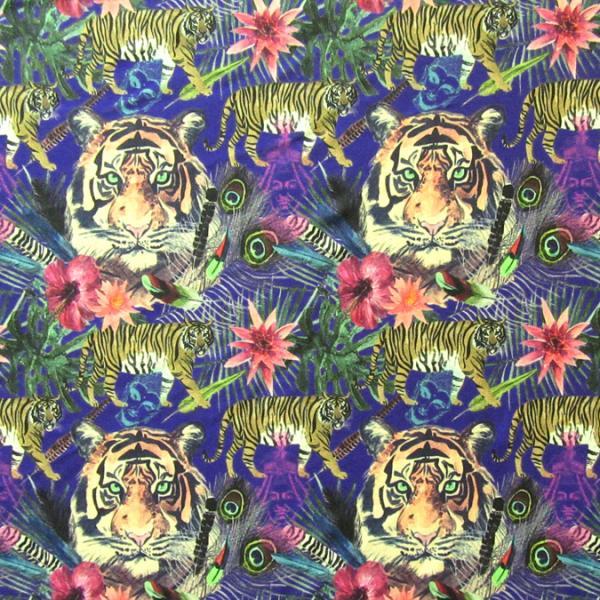 Tigers Print On Polyester Spandex, 4 Way Stretch, Multi-Colored