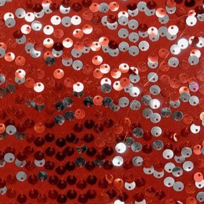 This is a Two-Tone 6mm Sequin on Polyester, 2 Way Stretch, Red/Silver/Black Made from Polyester